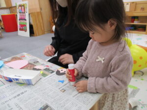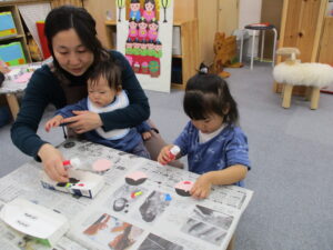 ちびっこひなまつり 2025.03.18 3月3日(月)雨の降る中、たくさんの方にご参加いただきました。 ひなまつりの歌を歌い、花吹雪で風情を楽しんだあとひなまつり会のスタート♫ 制作では、お内裏様やお雛様の着物の色や手形スタンプの色を選び、個性あふれるオリジナル作品が出来上がりました。 フォトコーナーでは、親子で記念撮影をして心に残る素敵なひなまつり会になりました♪
