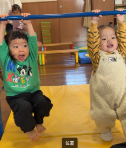 初めはサーキット運動。鉄棒や平均台・トンネルなど自分の好きな遊具をそれぞれのペースで楽しんでいました。