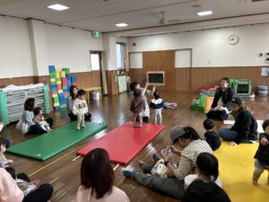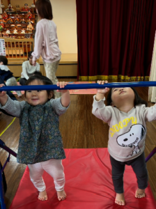 なのはなこども園の遊戯室で、わらべうた・サーキット遊びをしました。