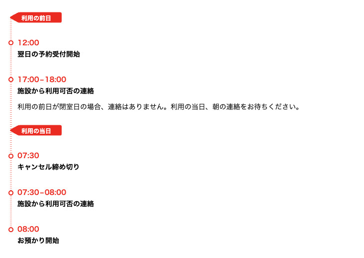 4. ●キャンセルされる場合は、当日7:30までに「あずかるこちゃん」よりキャンセル手続きを完了してください。